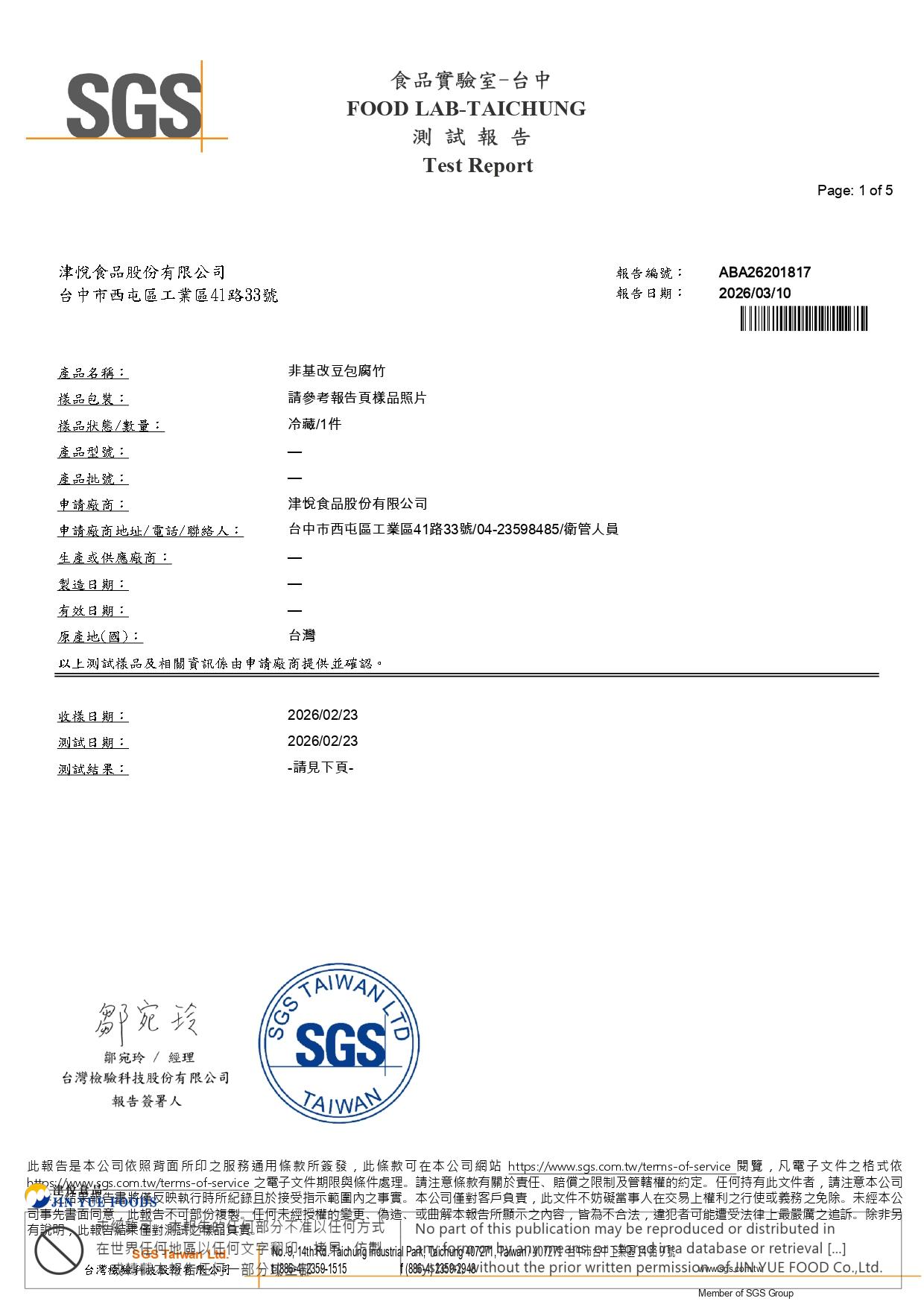 豆包(非基改)SGS檢驗報告