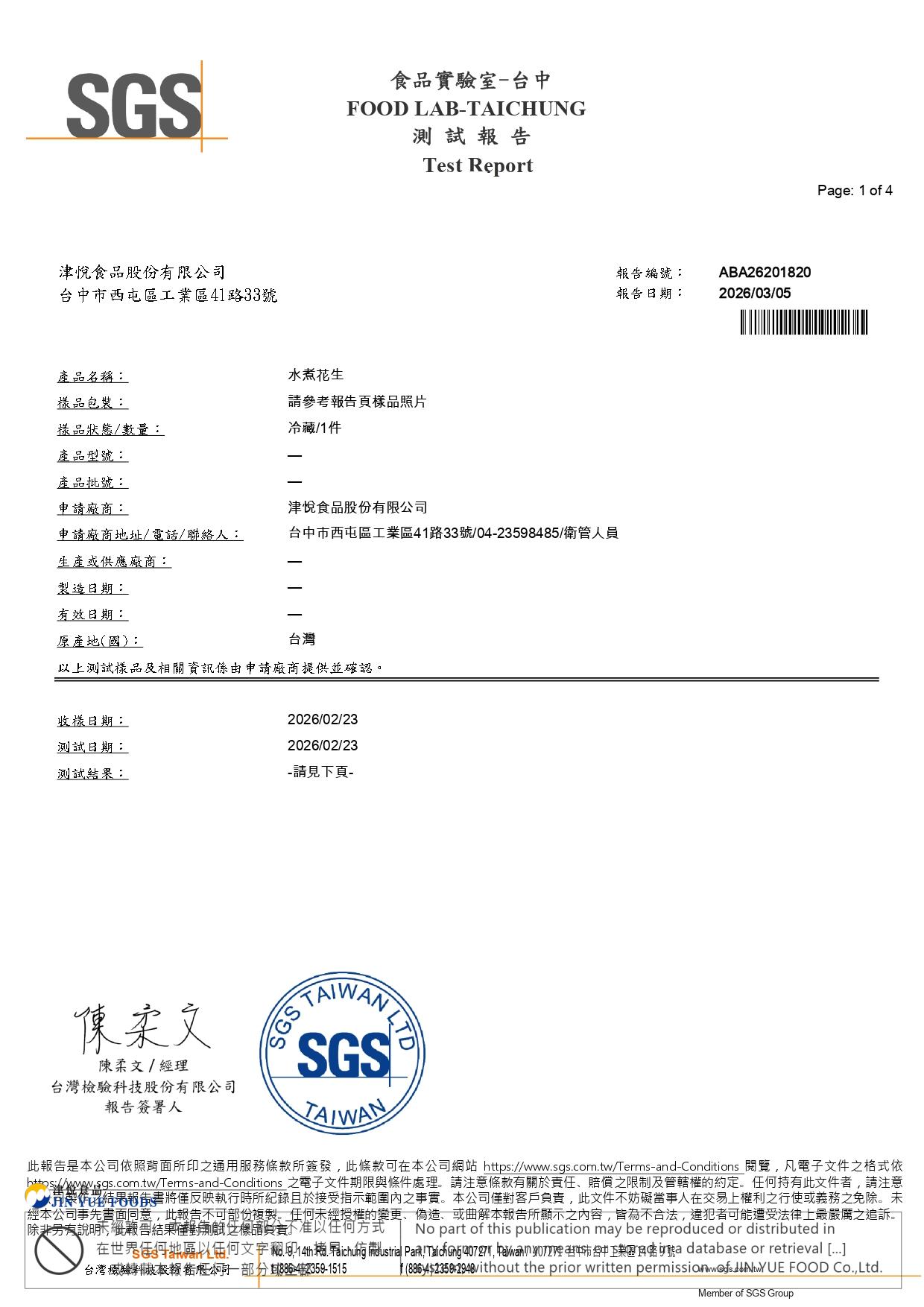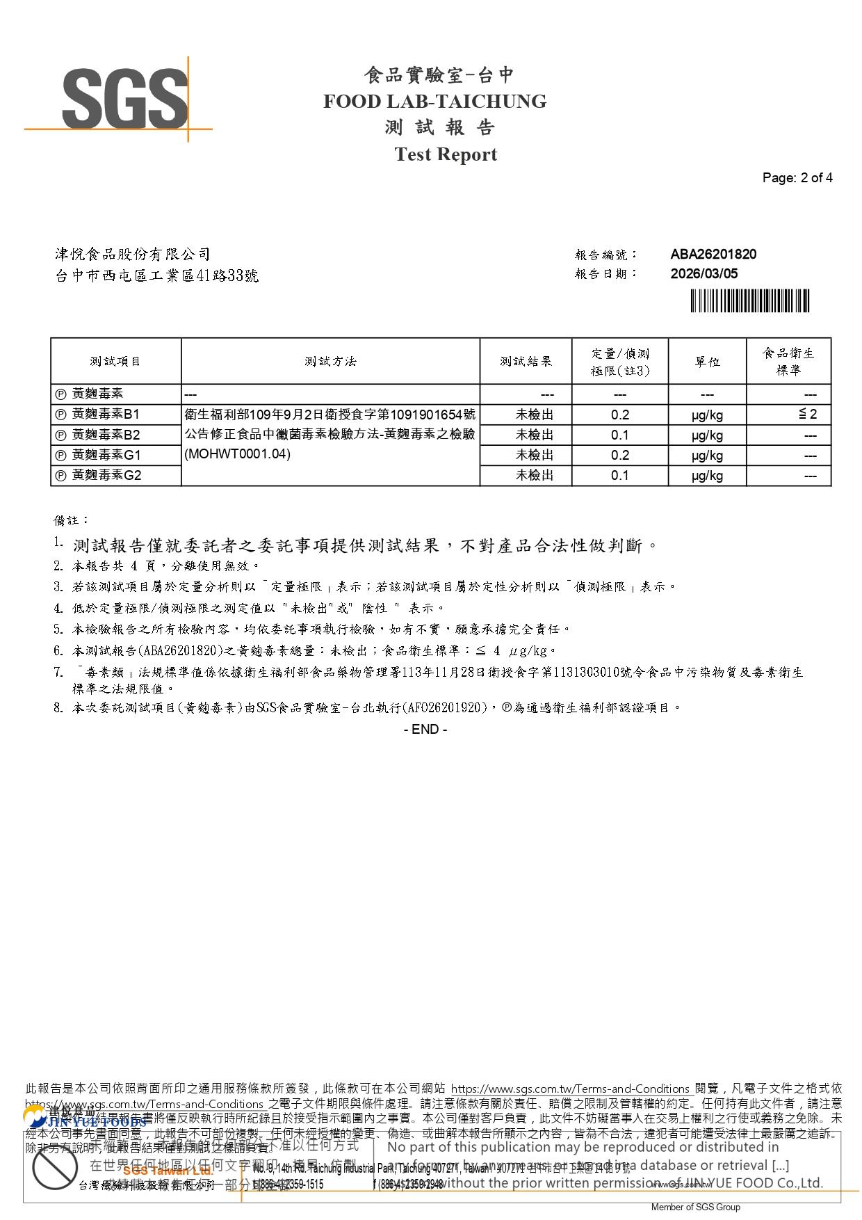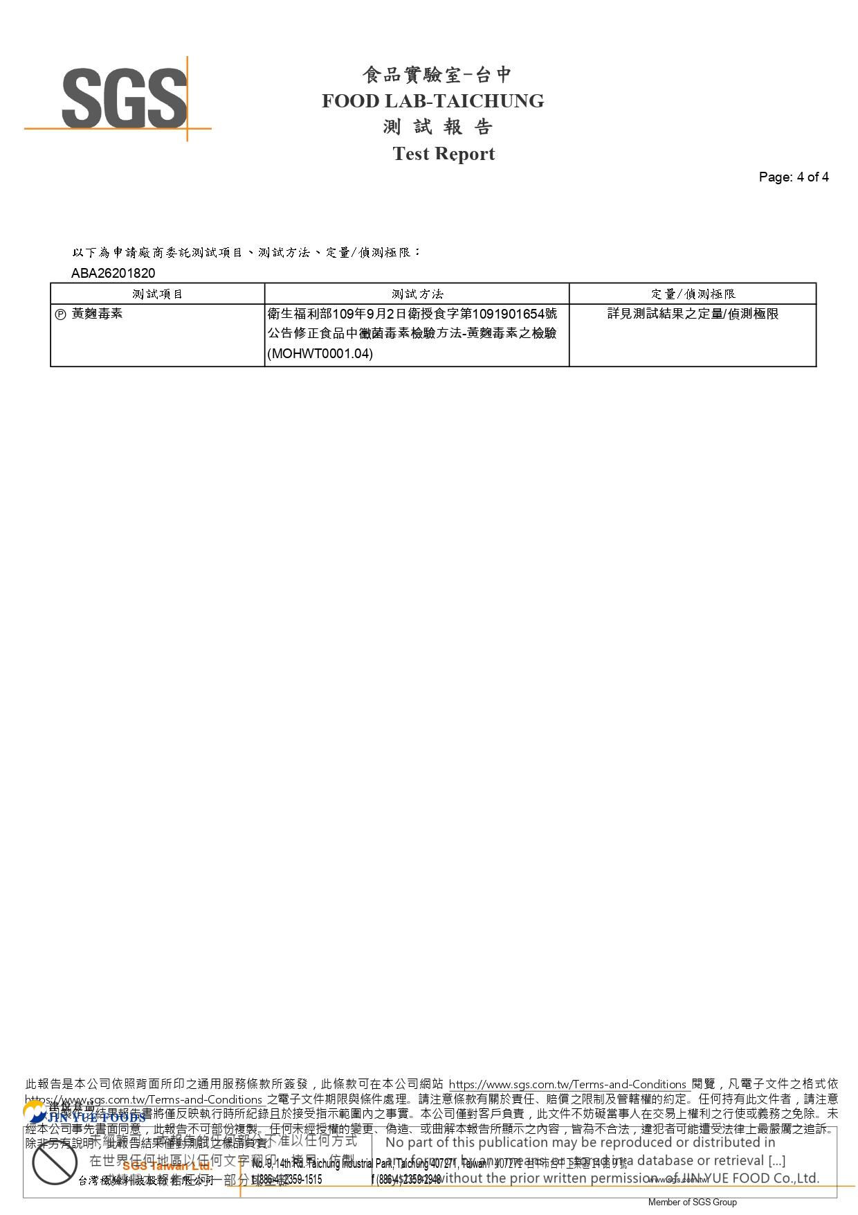 花生(黃趜毒素)SGS檢驗報告