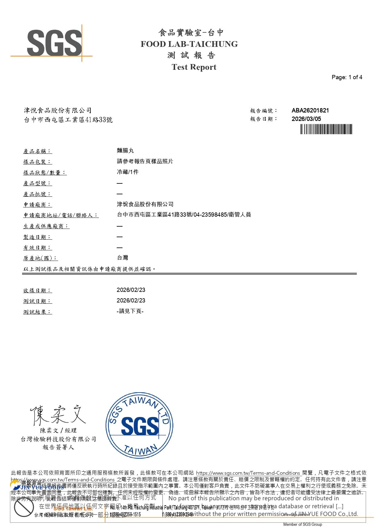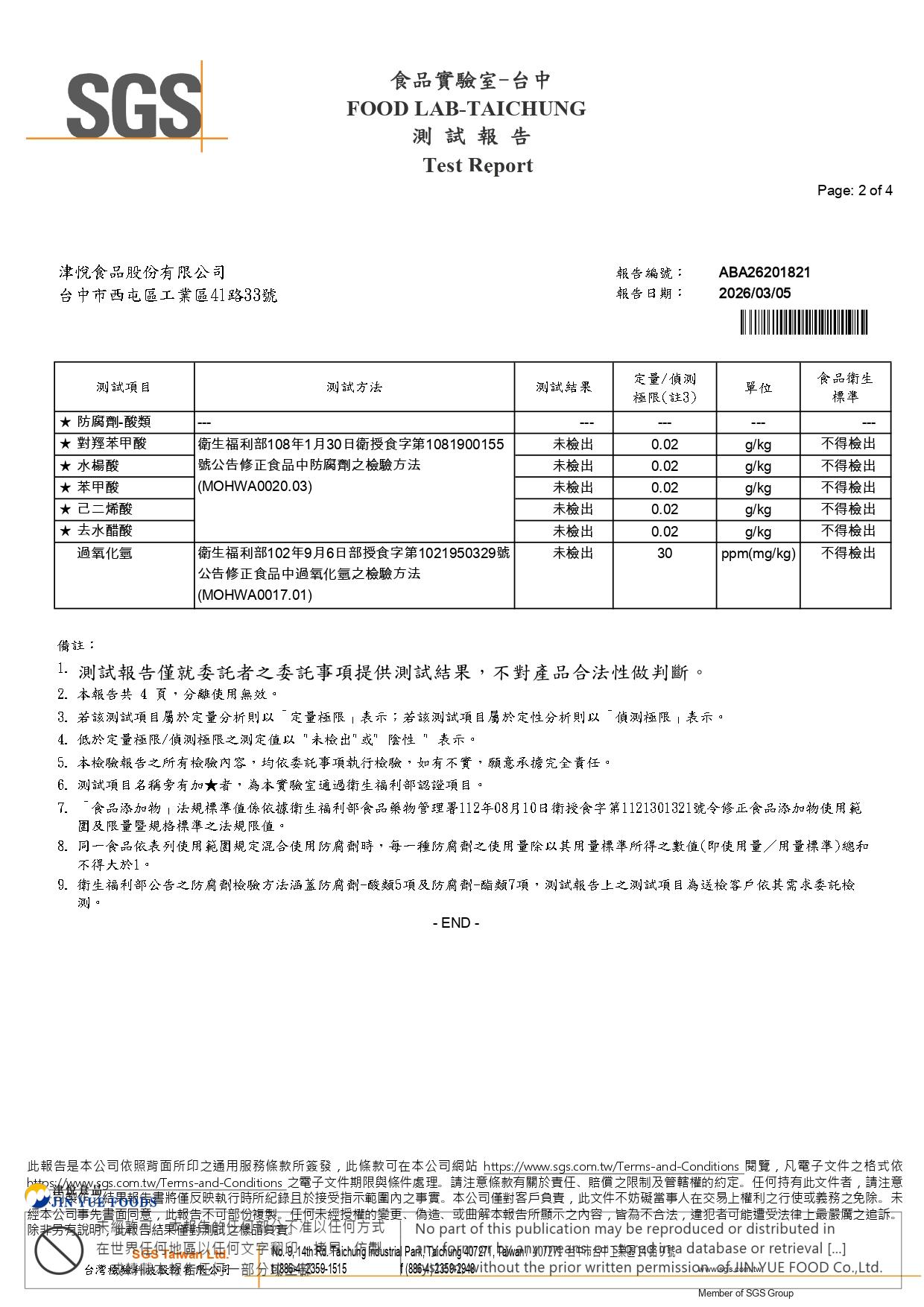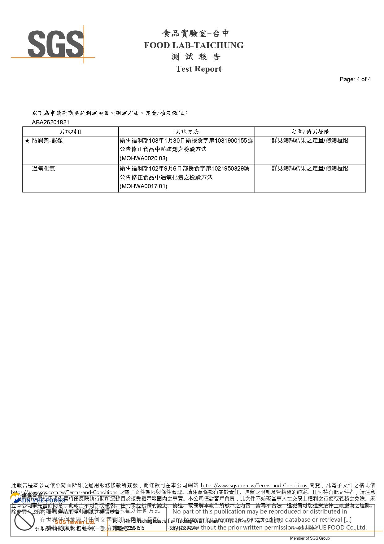 麵腸(防腐劑+過氧化氫)SGS檢驗報告